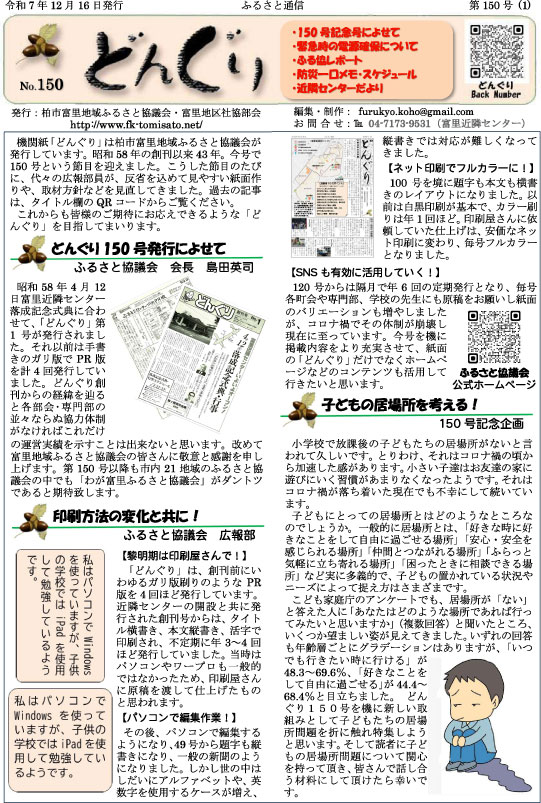 地域の皆様および柏市富里地域ふるさと協議会の皆様には、日頃より二中学区の児童生徒のためにご尽力いただき、誠にありがとうございます。 今年度、柏二中は創立70周年を迎えました。卒業生は令和4年度までに2万3000名を超え、昭和・平成・令和とそれぞれの時代を経て、親子三代にわたって二中を卒業するなど歴史と伝統を今でも受け継いでいます。今回70周年の取り組みとして、航空写真やクラス写真撮影、横断幕、植樹(やまぼうし)、記念講演会、リーフレット作り、マスコット募集などを実施いたしました。 今後も在校生および卒業生は、この地域の中で育ち、成長していくと思います。卒業生には、この伝統ある二中の卒業生として誇りを持ち、この地域に感謝しつつ、様々なところで活躍してほしいと願っております。これからも地域とともに歩む柏二中を目指していきますので、引き続きご支援、ご協力をお願いいたします。